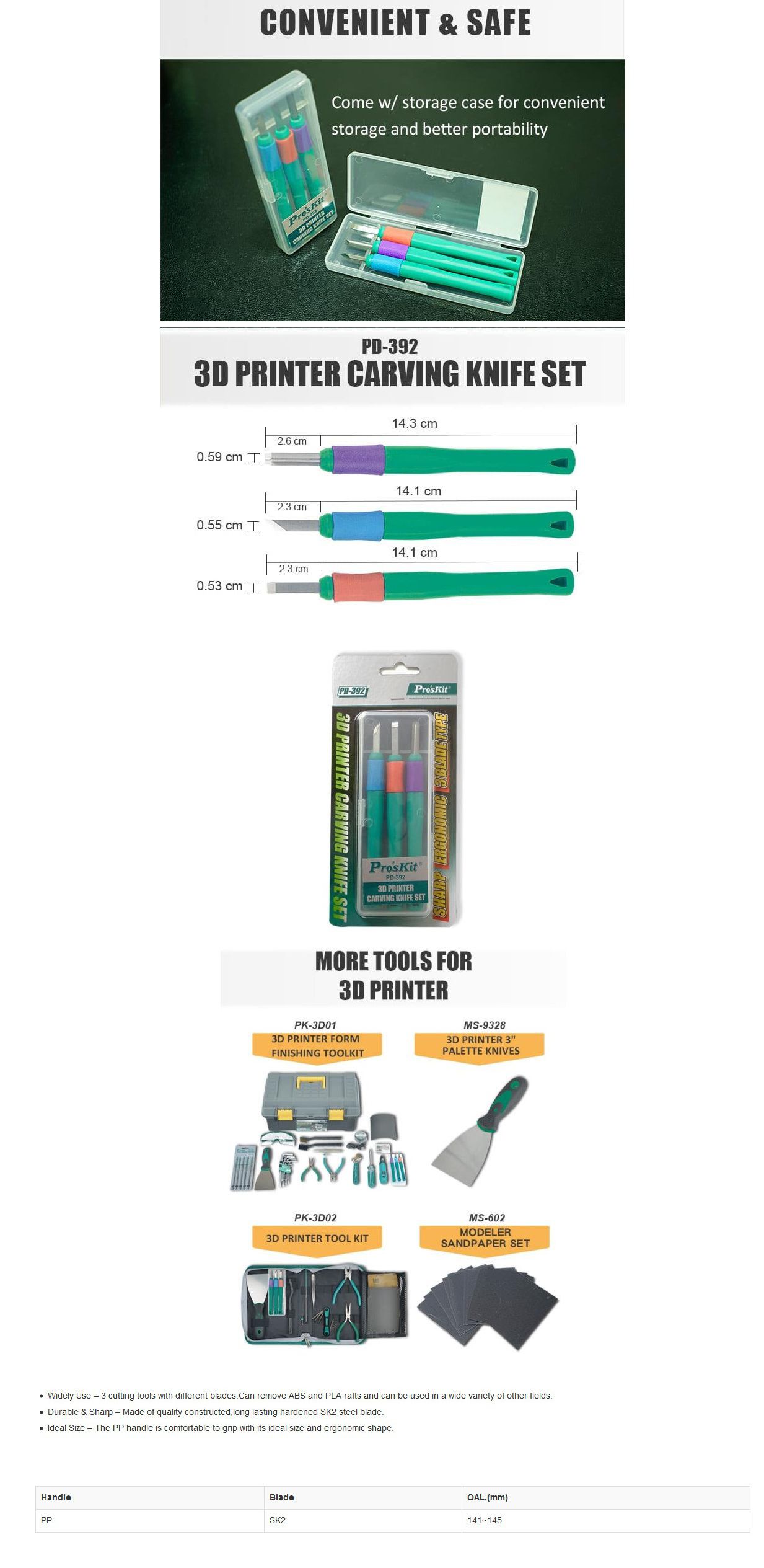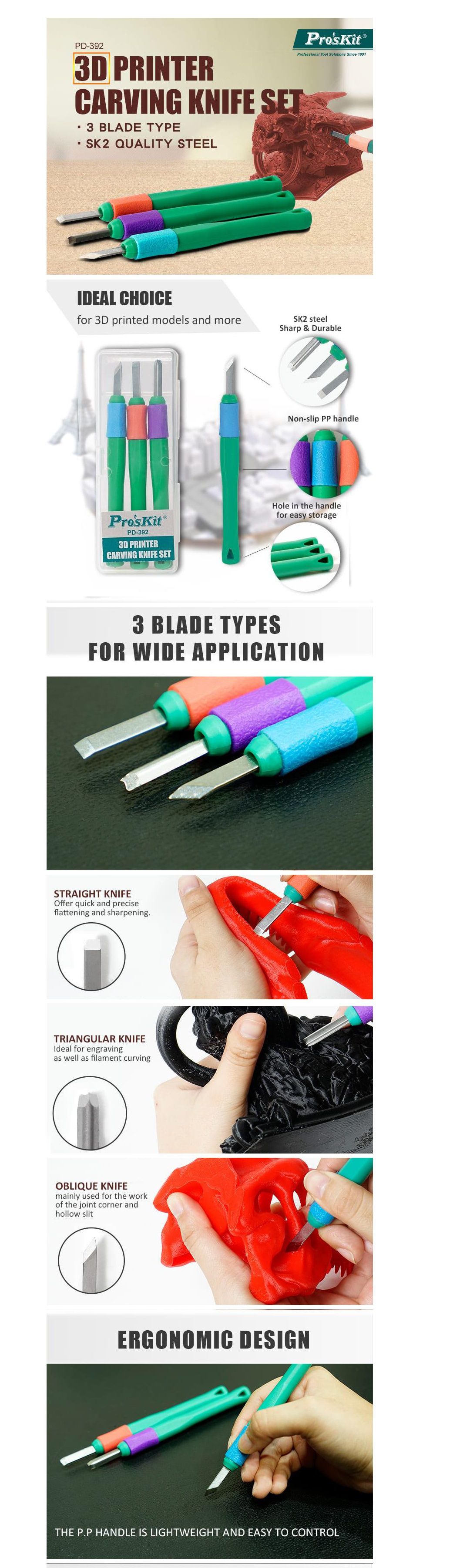Proskit PD-392 3D Printer Carving Knife Set (141~145mm) | EMINKH.COM