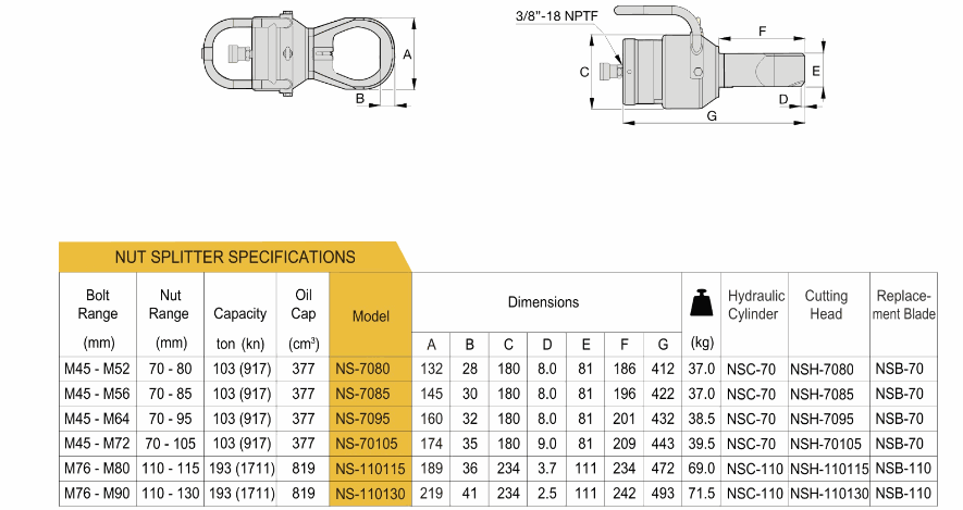 Protorque NS-70105 Hydraulic Nut Splitter (M45-M72) | EMINKH.COM