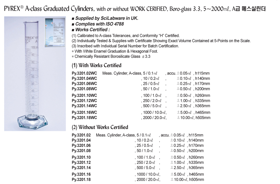 Pyrex Py.3201.18 A-class Graduated Cylinder (2000ml) | EMINKH.COM
