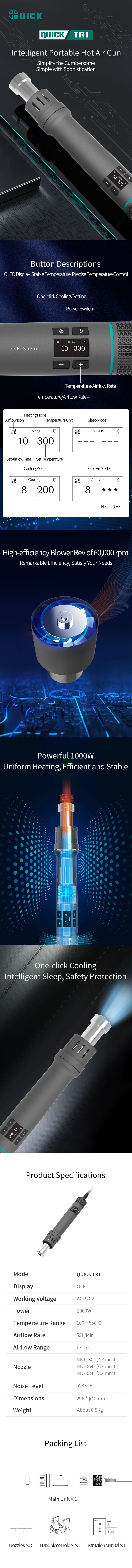 QUICK TR1 Intelligent Portable Hot Air Gun (AC 220V, 1000W) | EMINKH.COM