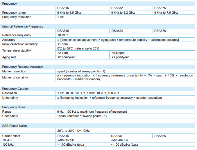● 10 Hz Minimum Resolution Bandwidth (DSA832/875)