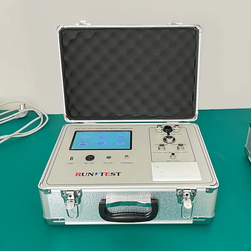 This instrument is an intelligent and fully automatic SF6 density relay calibration instrument. The instrument adopts single cycle instruction microcomputer technology, and its operation speed is 10 times of that of ordinary single chip microcomputer. It can conduct on-site verification on SF6 density relay with pointer contact output and intelligent current output, and use interrupt mode to capture the action of density relay in real time, so the instrument can measure more accurately and timely. This instrument is a portable calibration instrument for standard conversion of SF6 gas pressure under any ambient temperature, and it can also automatically calibrate SF6 density gauge and pressure gauge.