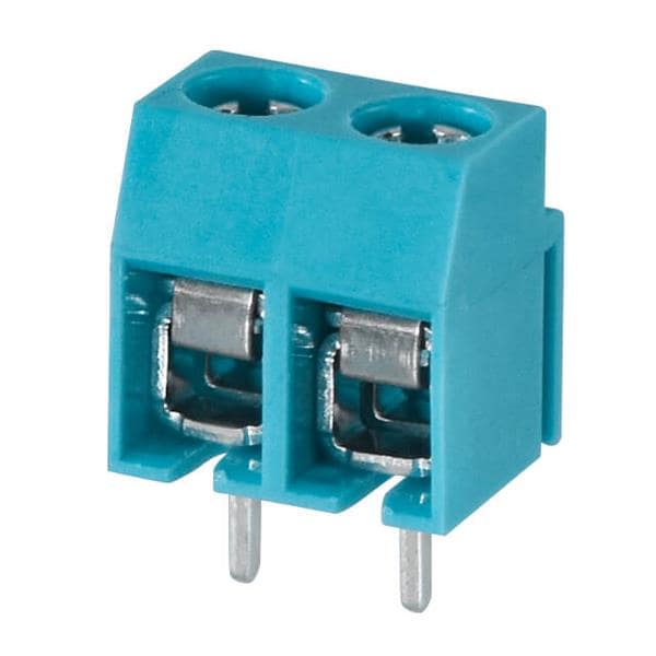 Same Sky (formerly CUI Devices) TB003-500-P02BE Fixed Terminal Blocks Terminal block, screw type, 5.00 , horizontal, 2 poles, CUI Blue, Philip's head screw, PCB mount