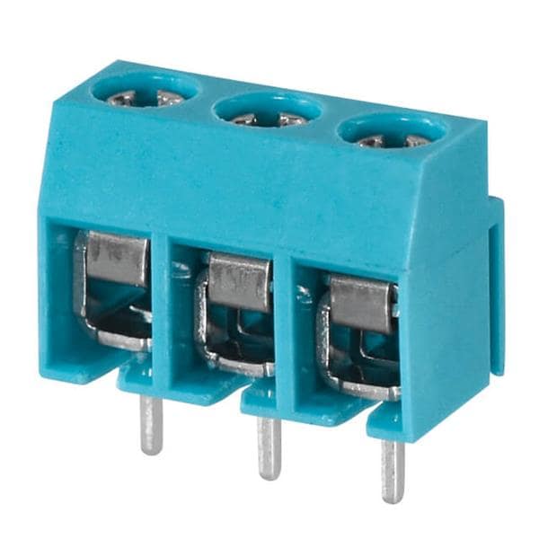 Same Sky (formerly CUI Devices) TB003-500-P03BE Fixed Terminal Blocks Terminal block, screw type, 5.00 , horizontal, 3 poles, CUI Blue, Philip's head screw, PCB mount