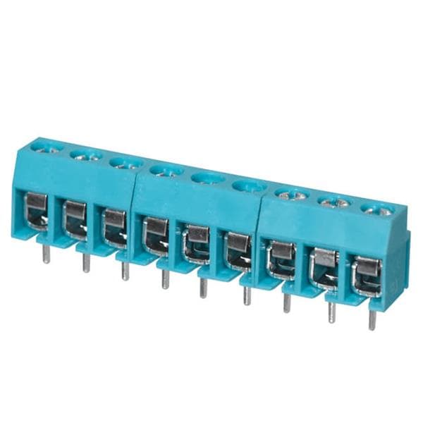 Same Sky (formerly CUI Devices) TB003-500-P09BE Fixed Terminal Blocks Terminal block, screw type, 5.00 , horizontal, 9 poles, CUI Blue, Philip's head screw, PCB mount