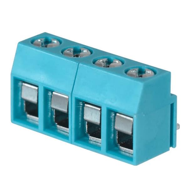 Same Sky (formerly CUI Devices) TB003V-500-P04BE Fixed Terminal Blocks Terminal block, screw type, 5.00 , vertical, 4 poles, CUI Blue, Philip's head screw, PCB mount