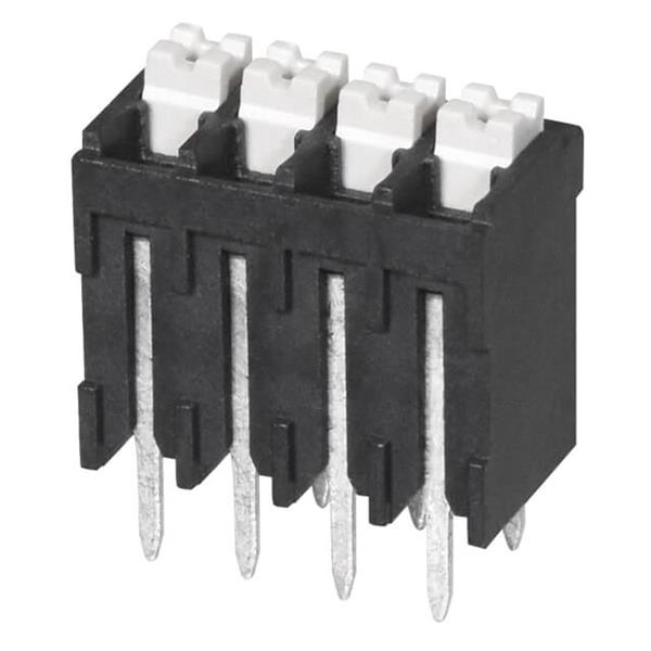Same Sky (formerly CUI Devices) TBLH10V-350-04BK Fixed Terminal Blocks Terminal block, screwless, High Temp, 3.5, Vertical, 4, Black w Gray Button