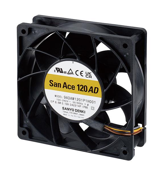 Sanyo Denki 9ADAW1201H10021 Fan AC, DC Axial Fan, 120x120x38mm, 100-240VAC, Splash Proof, Ribless, IP68 | EMINKH.COM