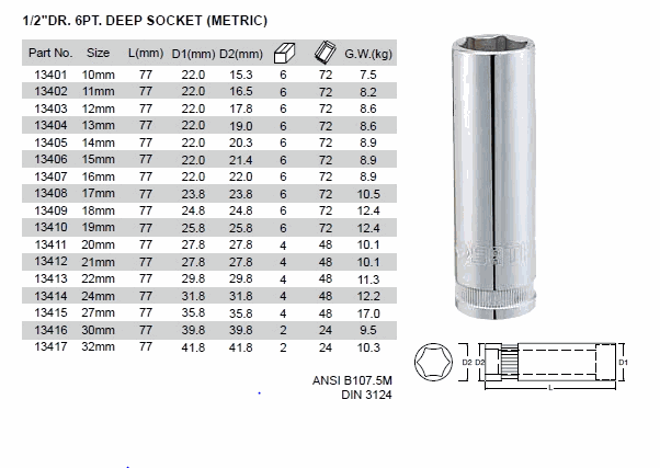 SATA 13409 1/2inch DR. 6PT. DEEP SOCKET (18mm,1/2inch,METRIC) | EMINKH.COM