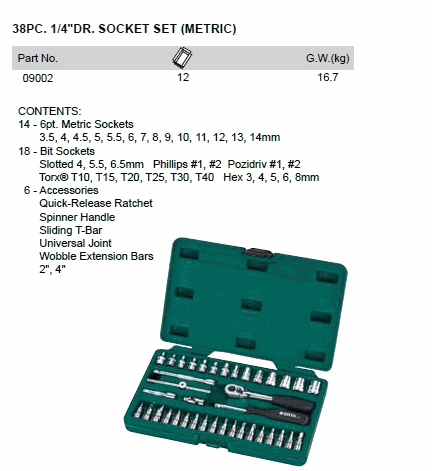 SATA 09002 38PC. 1/4inch DR. SOCKET SET | EMINKH.COM