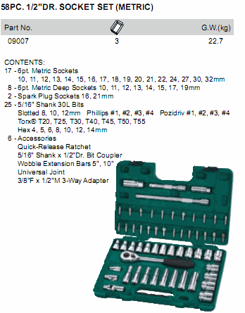 SATA 09007 58PC. 1/2inch DR. SOCKET SET (METRIC) | EMINKH.COM