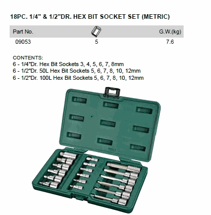 SATA 09053 18PC. 1/4inch & 1/2inch DR. HEX BIT SOCKET SET (METRIC) | EMINKH.COM
