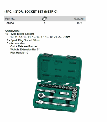 SATA 09086 17PC. 1/2inch DR. SOCKET SET (1/2inch,17 chi tiết) | EMINKH.COM