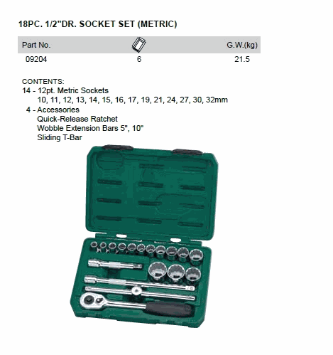 SATA 09204 18PC 1/2inch DR SOCKET SET (1/2inch,18 chi tiết) | EMINKH.COM