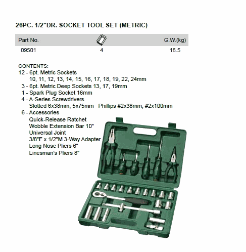 SATA 09501 26PC. 1/2" DR. SOCKET TOOL SET (METRIC) (1/2inch,26 chi tiết) | EMINKH.COM
