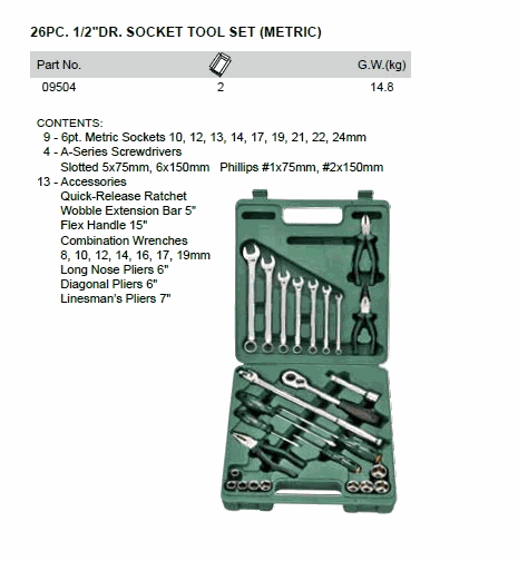 SATA 09504 26PC 1/2inch DR SOCKET TOOL SET (METRIC) (1/2inch) | EMINKH.COM