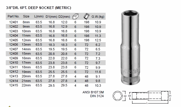 SATA 12406 3/8inch DR. 6PT. DEEP SOCKET (3/8inch,13mm,SAE,METRIC) | EMINKH.COM