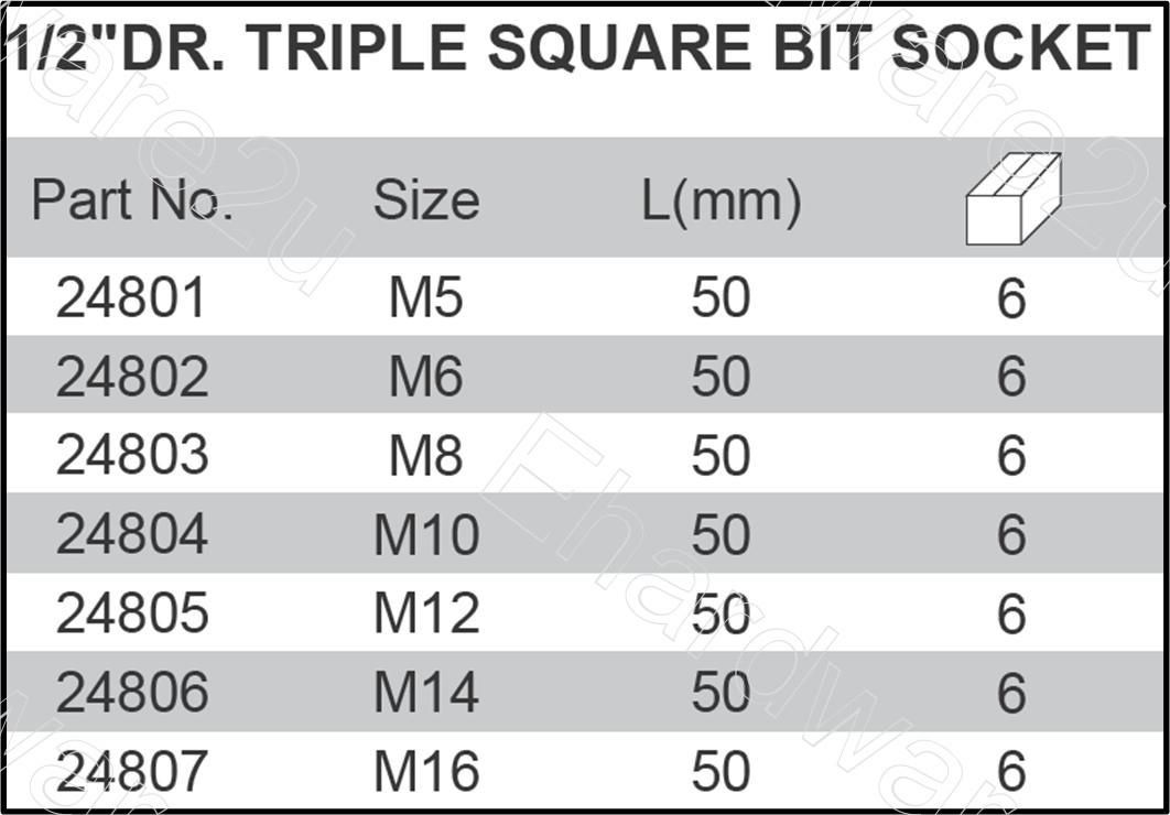 SATA 25805 1/2" DR. LONG TRIPLE SQUARE BIT SOCKET M12 (125mm) | EMINKH.COM