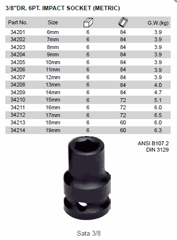 SATA 34213 6pt Impact Socket (3/8inch) | EMINKH.COM