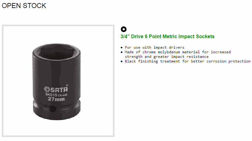 SATA 34522 3/4inch Drive 6 Point Metric Impact Socket (3/4inch,34mm) | EMINKH.COM