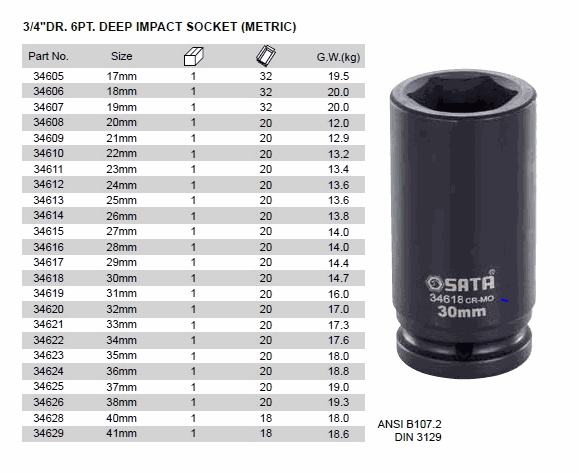 SATA 34620 3/4inch DEEP IMPACT SOCKET (3/4inch,32mm) | EMINKH.COM