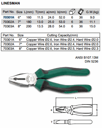 SATA 70302A LINESMAN PLIER 7 inch (7 inch) | EMINKH.COM