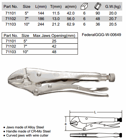 SATA 71101 CURVED JAW LOCKING PLIERS (5 Inch, ø25mm) | EMINKH.COM