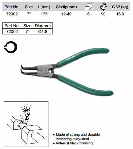 SATA 72002 SNAP RING - EXTERNAL OPEN CURVED (7inch, 12-40mm) | EMINKH.COM