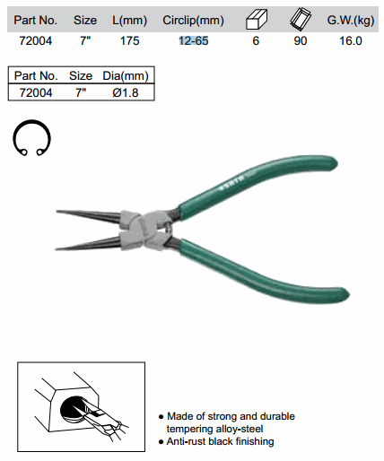 SATA 72004 SNAP RING - INTERNAL CLOSE STRAIGHT (7 inch, 12-65 mm) | EMINKH.COM