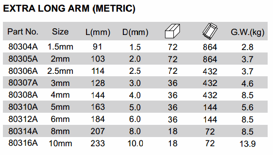 SATA 80312A EXTRA LONG ARM (METRIC, 6mm) | EMINKH.COM