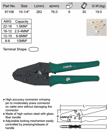 SATA 91106 HEAVY DUTY NON - INSULATED CRIMPING TOOL (10-1/4 inch, 1.5MM²-10MM²) | EMINKH.COM