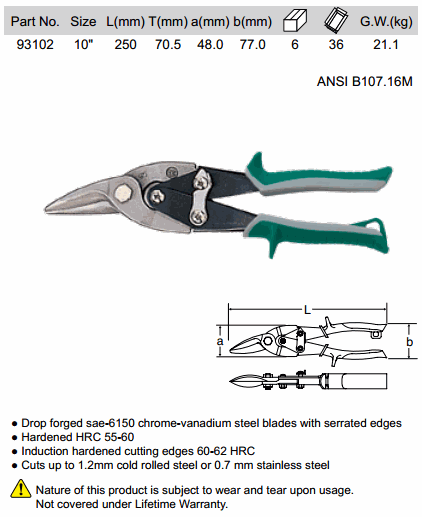 SATA 93102 AVIATION TIN SNIPS - RIGHT (10 inch, 250 mm) | EMINKH.COM