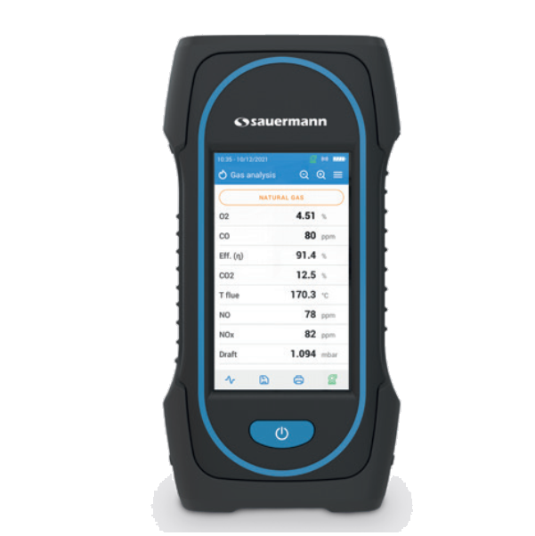 Si-CA 130 Gas Analyzer Kit 2AS, includes two gas sensors (O2, CO), upgradable to three gas sensors (NO/NOx or Low NO/Low NOx), 180 mm probe rated to 800 °C with 2 m dual hose, wireless connection to mobile app and remote printer (option), rubber holster, water trap with filter, charger with plug set, USB-C cable, quick start guide, calibration certificate and vinyl carrying bag