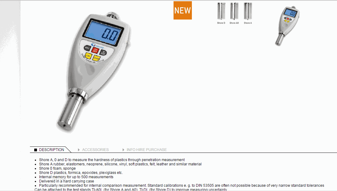 Shore A, 0 and D to measure the hardness of plastics through penetration measurement