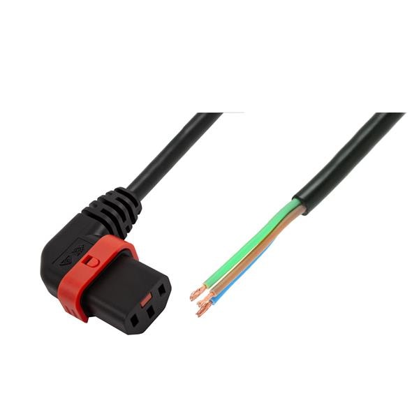 Schaffner IL13P-R-SE-H05-3100-200 AC Power Cord w/Lock C13+ right-angled, Stripped End, H05VV-F, 3x1.00 mm sq., 2 m, black | EMINKH.COM