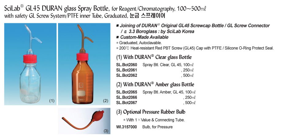 SciLab SL.Bot2060 DURAN glass Spray Bottle (Clear, GL45, 100ml) | EMINKH.COM