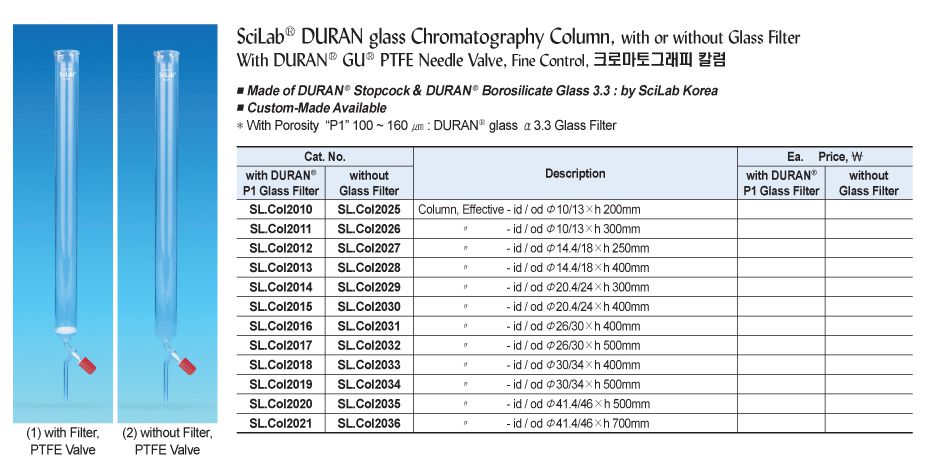 SciLab SL.Col2017 DURAN glass Chromatography Column (PTFE valve, P1-filter, Φ30xh500mm) | EMINKH.COM