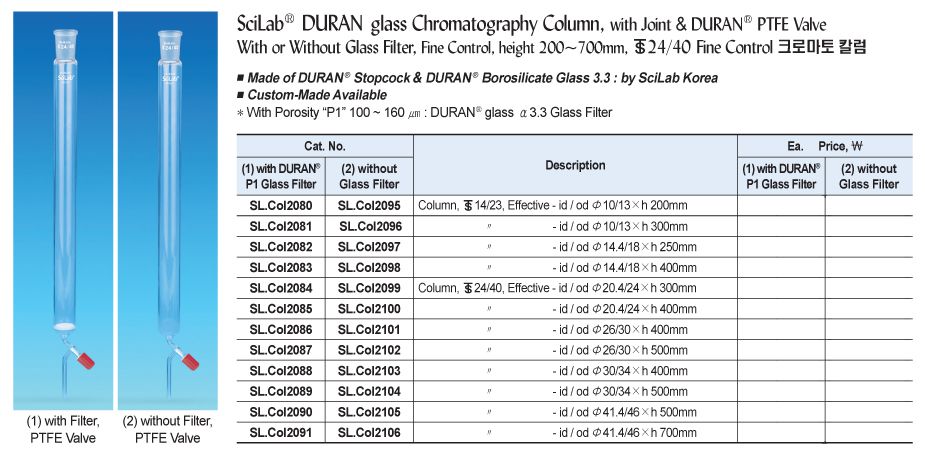 SciLab SL.Col2104 DURAN glass Chromatography Column (PTFE Valve, 24/40, Φ34xh500mm) | EMINKH.COM
