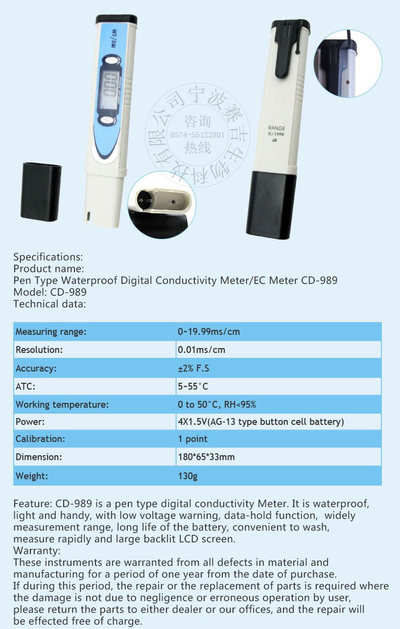 Sinotester CD-989 Pen Type Conductivity Meter (0~19.99ms/cm, 0.01ms/cm) | EMINKH.COM