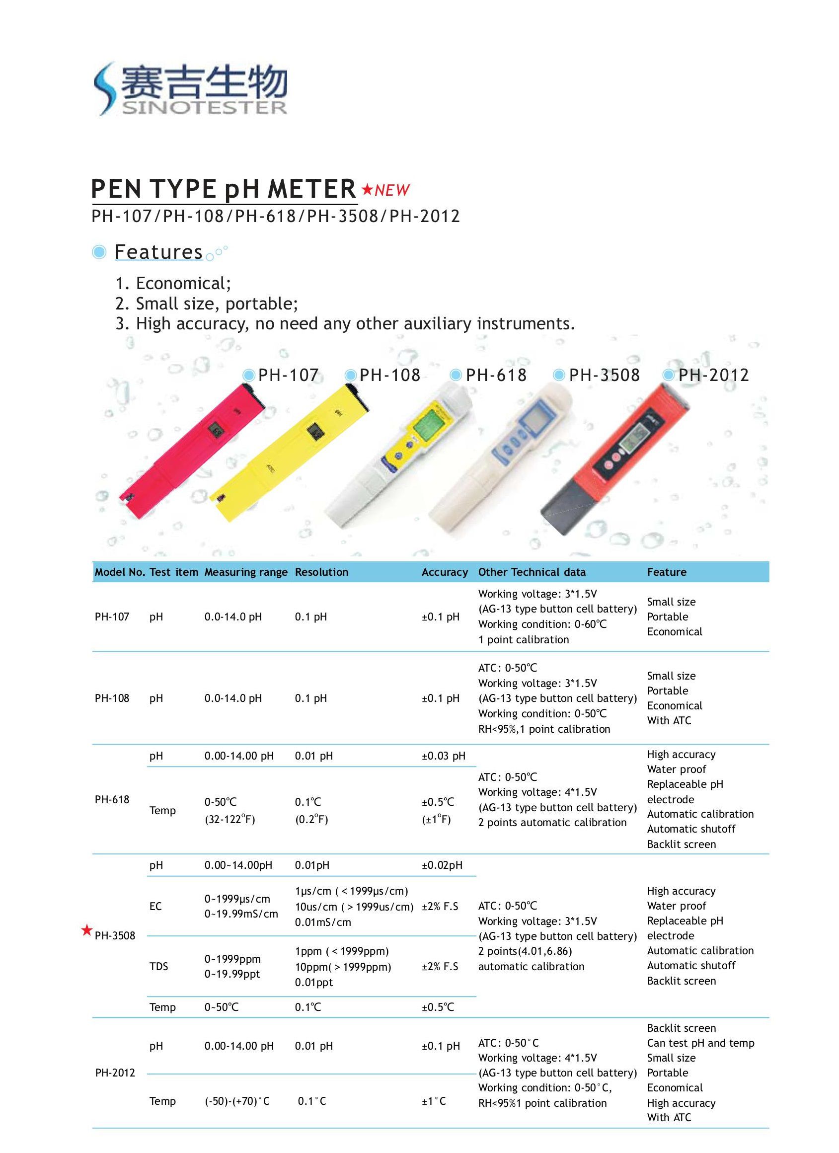 Sinotester PH-618 Pen type pH meter (0.00~14.00pH, 0~50℃) | EMINKH.COM