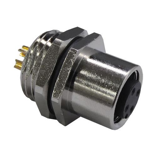 Stewart Connector SS-12000-005 Straight M12 A-Code Connector Female Front Panel Mount Receptacle 4 Contact Solder Cup Contacts | EMINKH.COM