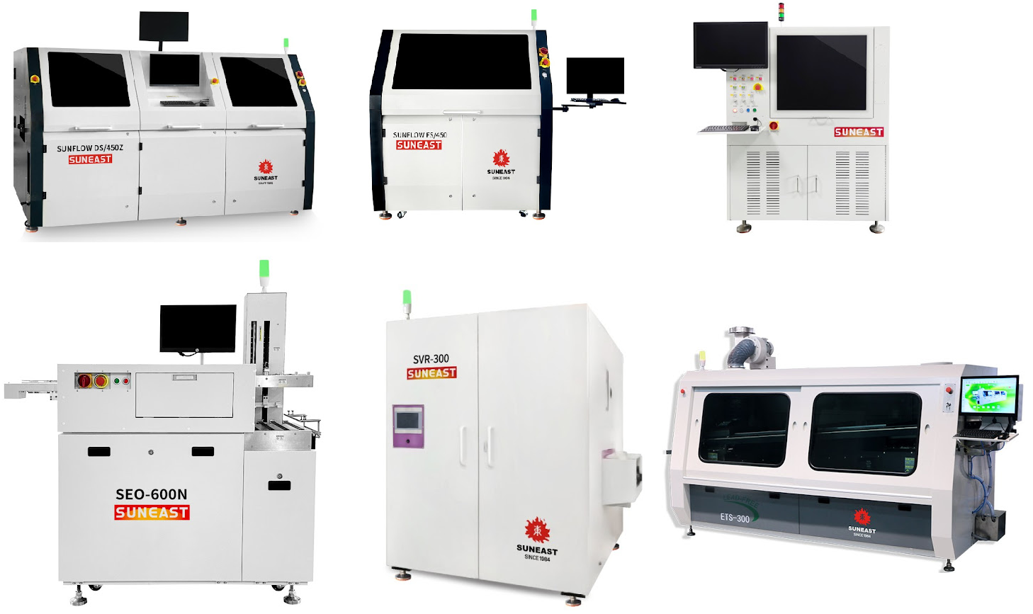 Suneast develops a diverse range of equipment to fully support SMT electronics assembly lines and high-tech component manufacturing. Key product groups include: