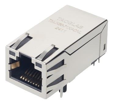 Taoglas TMJK60-71KAONL Modular Connectors / Ethernet Connectors RJ45 ICM, 1x1, 1G Base-T, Tab-Up, Long Body, 3Wire + Transformer, Shielded EMI Finger, PoE++(720mA), 6 micro-in, Industrial grade