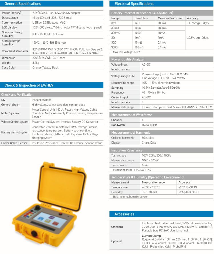Measures internal resistance Iml of EV/HEV battery pack 1500V max