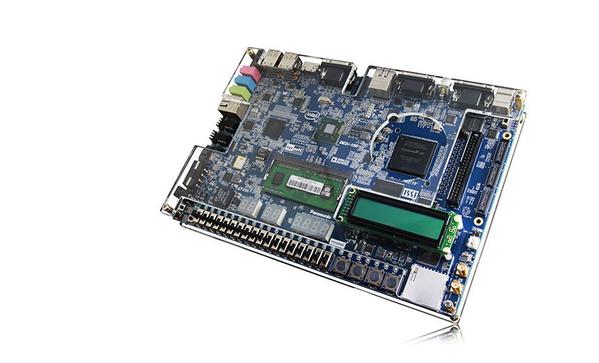 DE2i-150 is equipped with around 150K logic elements with ultimate flexibility in terms of reconfiguration of actual hardware circuity and intellectual property as well as on-board multimedia peripherals, extendibility options for a true system-ready solution for any task.