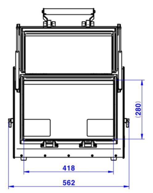- Inside : 445(W) x 450(D) x 338(H) mm, 208(D) mm Top side.