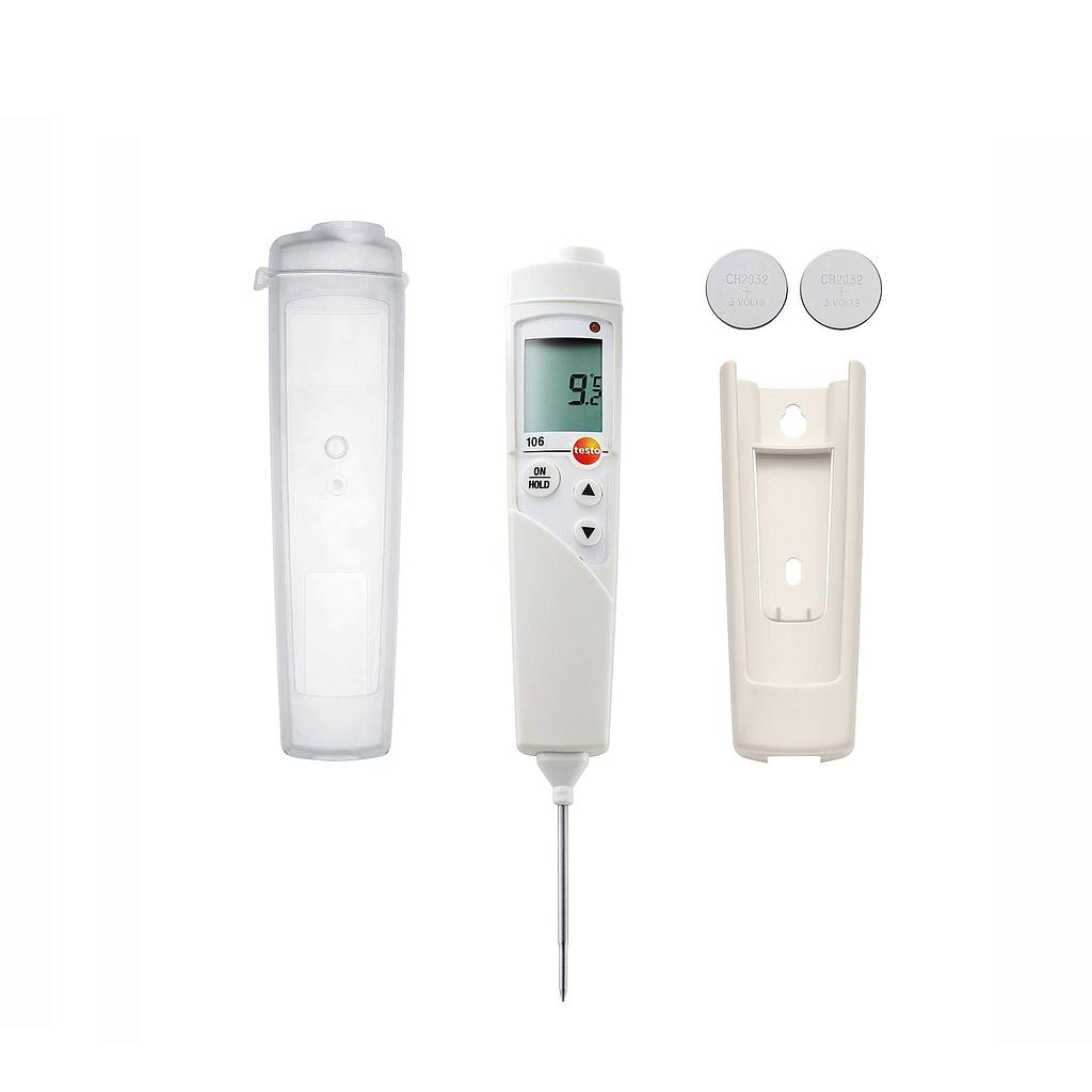 If you are looking for a thermometer that can measure the core temperature of food quickly and reliably, then look no further! The testo 106 food probe thermometer is now available as a kit together with a protective case that ensures that your thermometer complies with EN 13485 and that it is splash water proof and protected against dirt ingress. In addition, there`s also a clip for safe and easy storage (i.e. secured to a wall or attached to your belt).
