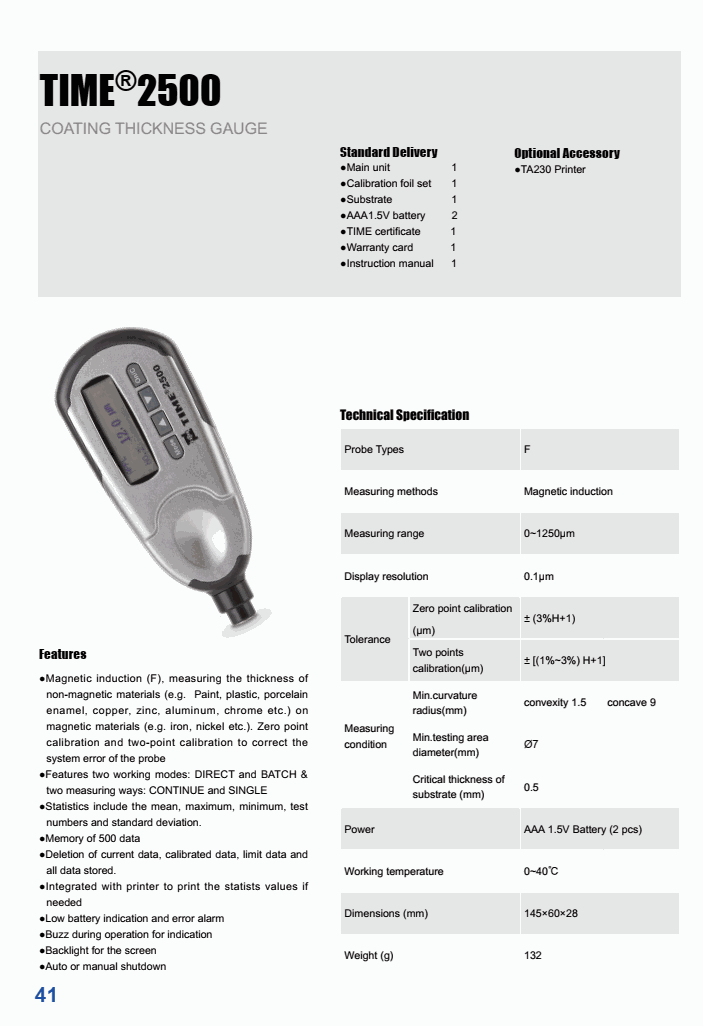 Measuring range: 0~1250μm