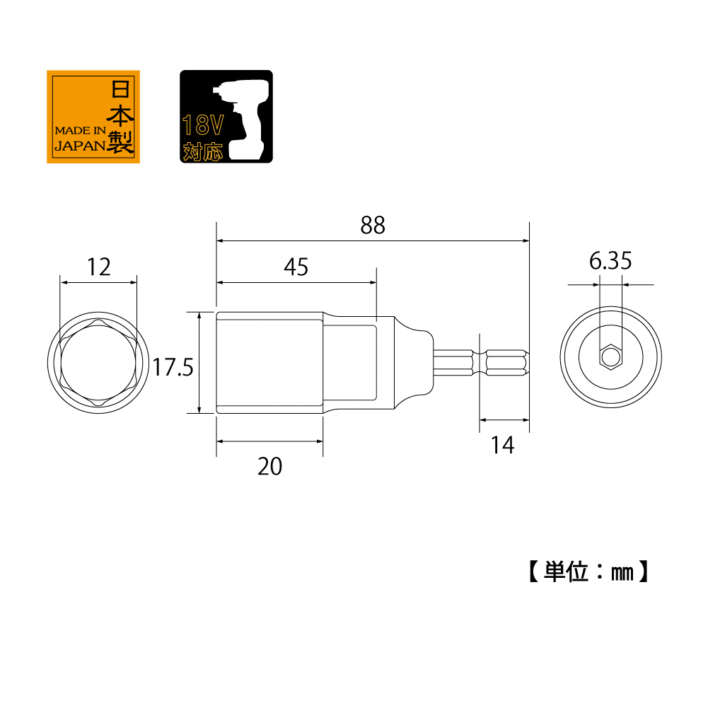 TOP Kogyo EDS-12C Compact Socket Bit (12mm) | EMINKH.COM