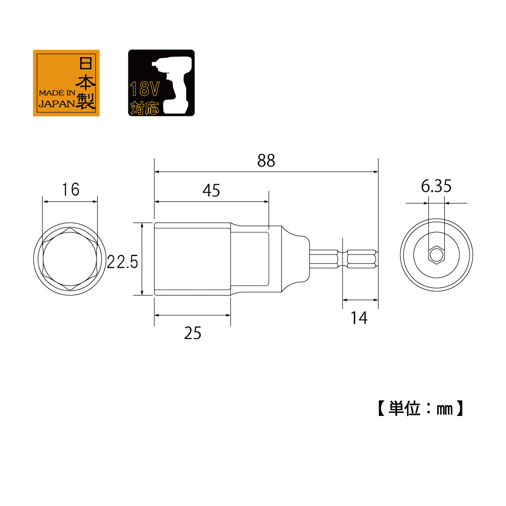 TOP Kogyo EDS-16C Compact Socket Bit (16mm) | EMINKH.COM